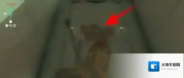 朝东侧墙壁上方看,用附加有火焰果的箭射击可燃的藤蔓,宝箱掉落,拾取小钥匙。
