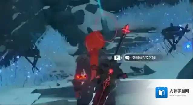 1、第一个,在“覆雪之路”传送点右侧平台上面,解锁石碑之后在平台小岛上触碰剑柄即可,完成挑战可以获得一个匣子,用于后面开启密室的;