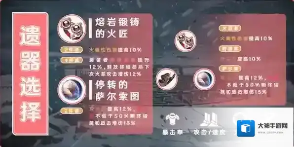 主词条方面,头部和手部为固定的生命值和攻击力属性,躯干选择暴击率,脚部选择攻击力或速度,位面球选择火属性伤害加成,连结绳选择攻击力。