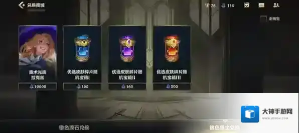 1、在战利品的兑换商城中,我们可以用银色形成兑换奥术光辉拉克丝皮肤、优选皮肤碎片随机宝箱I、优选皮肤碎片随机宝箱II、优选皮肤碎片随机宝箱III.