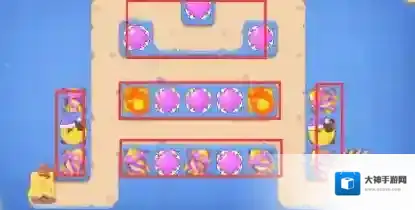 2、在最上面放置一个魔法球,开始清理两边障碍物,空出格子放置魔法球,继续清理下面障碍物。
