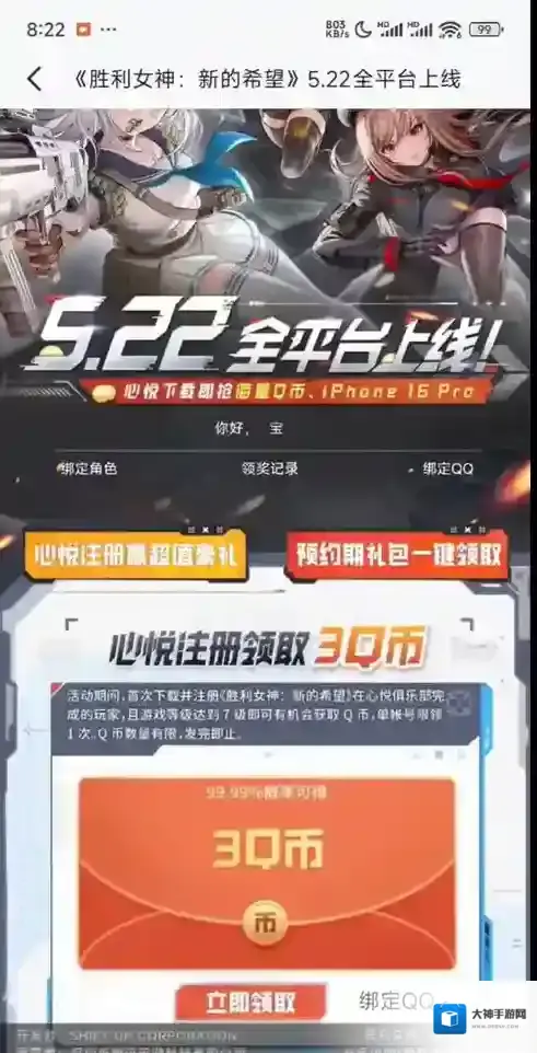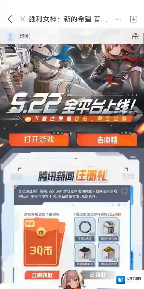 4.打开QQ浏览器,搜索胜利女神:新的希望,进入活动页面领取