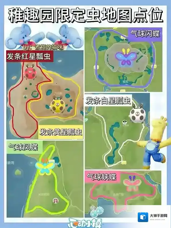条红黄白金星瓢虫 发条青蛙 气球蛱蝶 气球闪蝶 气球凤蝶位置