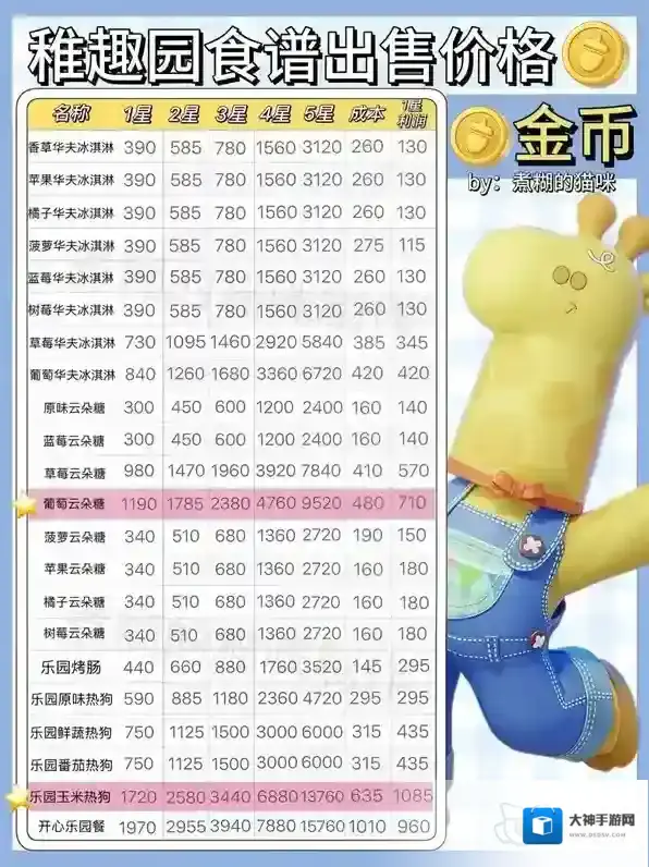 5.稚趣园所有食谱庆典币 金币出售价格及利润