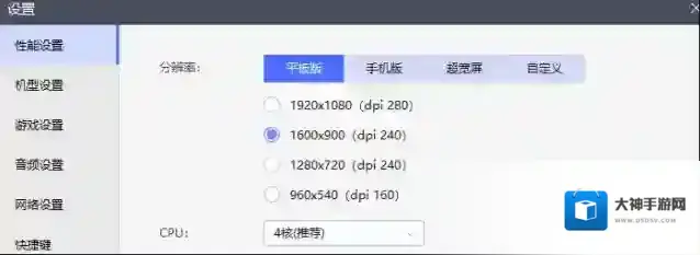2.打开模拟器右侧设置-机型设置-自定义品牌,把手机品牌修改为ipad,修改模拟器分辨率,如1600*900,输入后点击下方保存后重启模拟器。