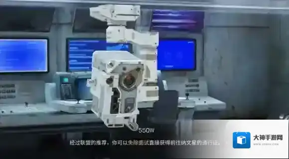 经过一段时间的等待,太空电梯周围迷雾终于散开了,随后我前往指挥室寻找MOSS。原来经过联盟的推荐,我免除面试直接获得了前往纳文星的通行证。
