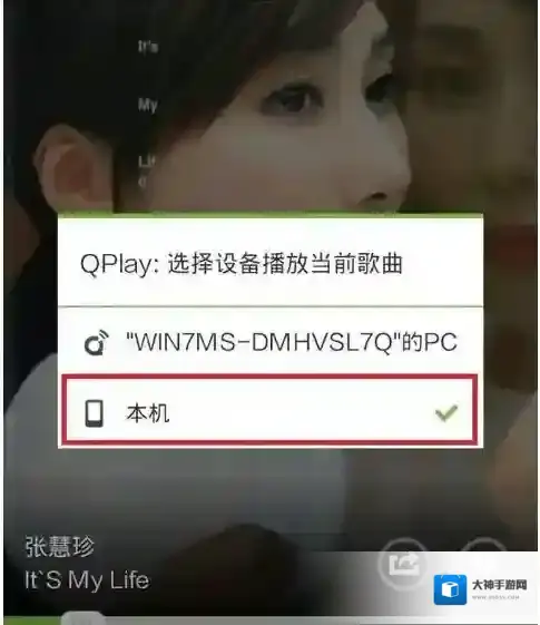 第六步:因为现在是在手机qq音乐播放歌曲,所以这边显示的是在本机。然后你打开电脑上最新版本的qq音乐,并且手机选择你的电脑设备。