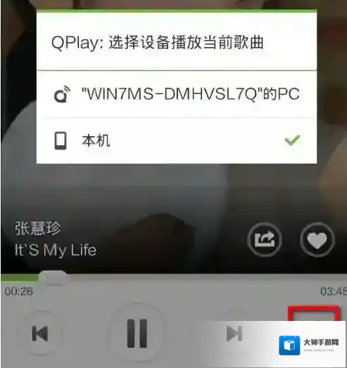 第七步:如果不想遥控电脑了的话,就点击下Qplay标志选择本机,断开Qplay,电脑上的qq音乐就不会播放歌曲了。