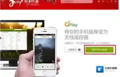 第五步:然后打开你要播放的歌曲,在歌曲播放页面右下角能看到一个Qplay的标志,打开。