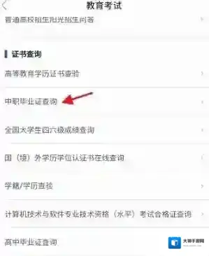 进入教育考试,找到证书查询,点击中职毕业证查询进入