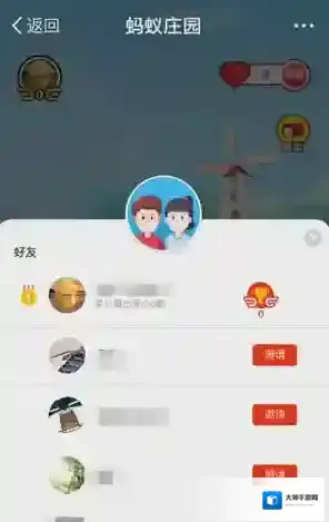 7、在蚂蚁庄园页面的左下角有个“好友”按键,用户可以点击此按键进入到好友的庄园中去,也可以通过这里邀请到一些未开通蚂蚁庄园的好友进行开通。