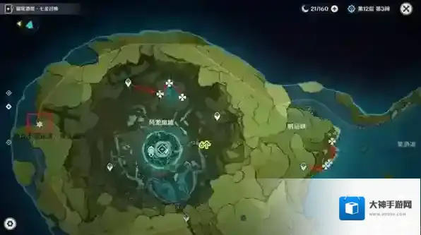 2.风龙废墟以及明冠峡右侧海岸,数量较少,但很好找,不过风龙废墟最左侧六角星标注位置,只有一个,非常远,浪费时间,不建议去收集,这个时间留出来可以收集其他区域了,而且一个,去商人买,去尘歌壶种都比这个有性价比。