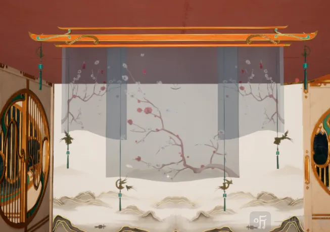 玉兔庆典吊纱垂挂着带有兔子元素的小挂件,象征着兔年的到来,吊纱上的梅花绽放开来看上去更加优美