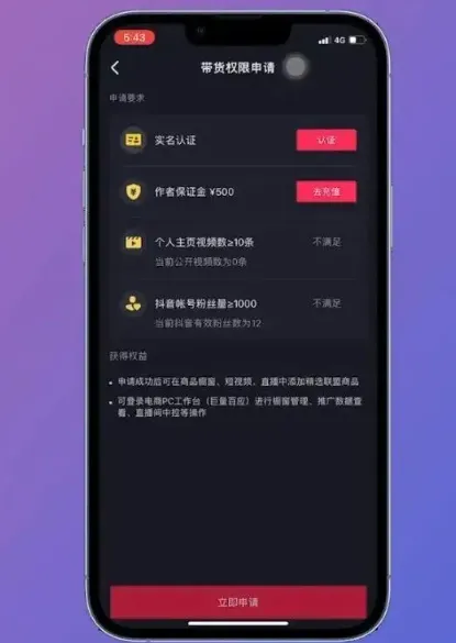 第五步:点击带货权限申请