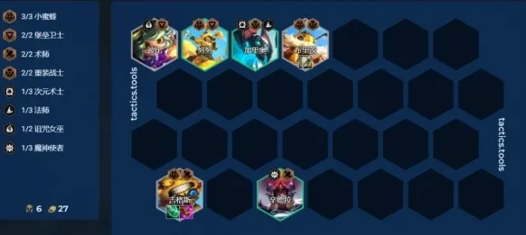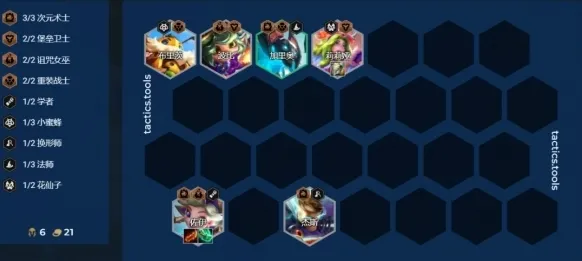 这套核心是两猎手搭前排,诺姆希前期有不错的伤害,前排可以用换型,重装以及堡垒之一,搭换型过渡后期可以很平滑转成4换型4枪手的维鲁斯,搭堡垒过渡也可以平滑玩到堡垒魔战滑板鞋。