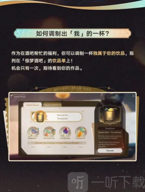 扮演调饮师,解决「惊梦酒吧」客人们的情绪困扰,即可获得自塑尘脂*1、命运的足迹*2、星琼*1400、旅程之遇:「杯中逸事」、短信和聊天对话框「怪物酒馆」等奖励。