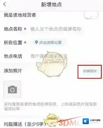 点击进行拍照,如果不知道怎么拍照的话,可以点击“示例照片”作为参考,在“问题描述”一栏简单描述下这个地点的特征。