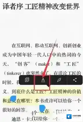 5.点击打开试读的选项之后,我们进入书的封面页面,接下来我们向左滑动,然后进入书的具体内容页面,选择需要设置的文字内容,即长按屏幕即可选择。