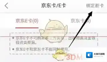 5、进入京东E卡,你是要绑定京东E卡是吧,点击绑定新卡。