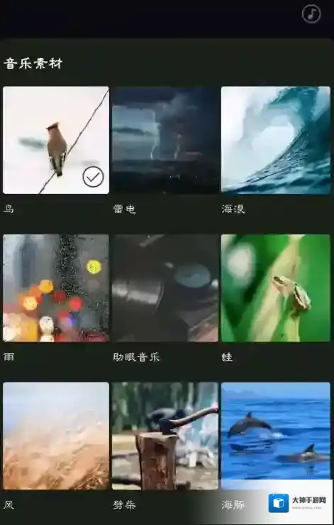 如果你不满意当前的音乐,可以点击右上角的音符状图标,选择音乐。长按屏幕则可以结束睡眠模式,重新回到设置时间那个界面。