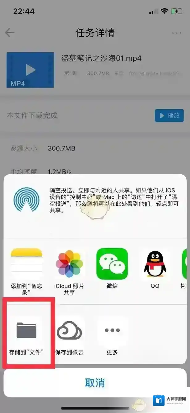 打开迅雷,我下载了一个视频作为示范。在下载列表,点击下好的视频,进入任务详情,然后点击右上角的三个点