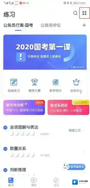 6、返回粉笔公考APP,找到右上角的菜单按钮并点击;