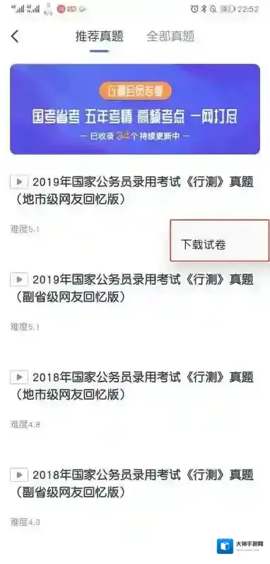 3、进入粉笔公考真题界面,挑选自己需要的试卷;