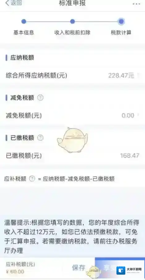数据系统将自动计算您本年度综合所得应补(退)税额。