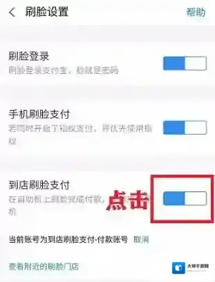 5、以关闭到店刷脸支付为例,点击到店刷脸支付右边开关;