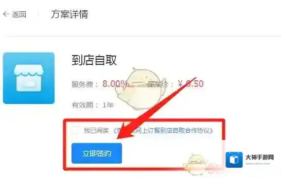 4、最后进入到店自取页面,点击“立即签约”即可。