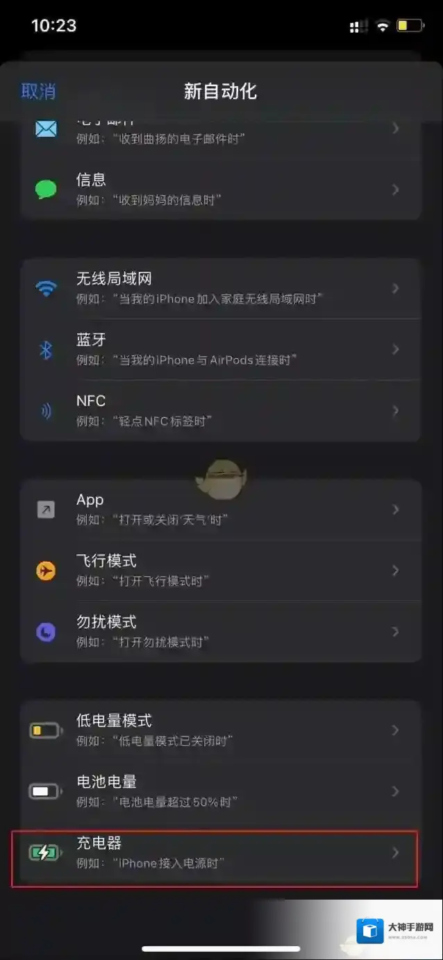 7、直接后台退出快捷指令重新打开,选择底部的自动化,并点击创建个人自动化- 充电器- 下一步。