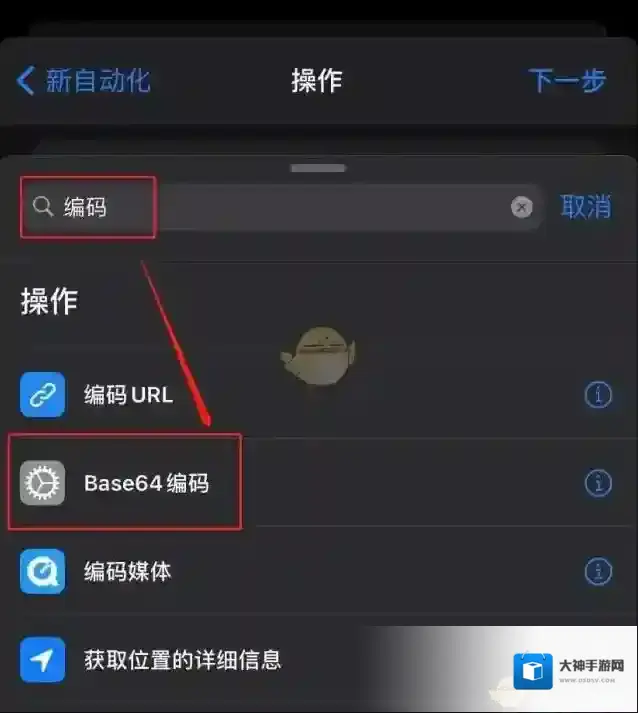 10、在搜索框中输入编码,选择base64编码。