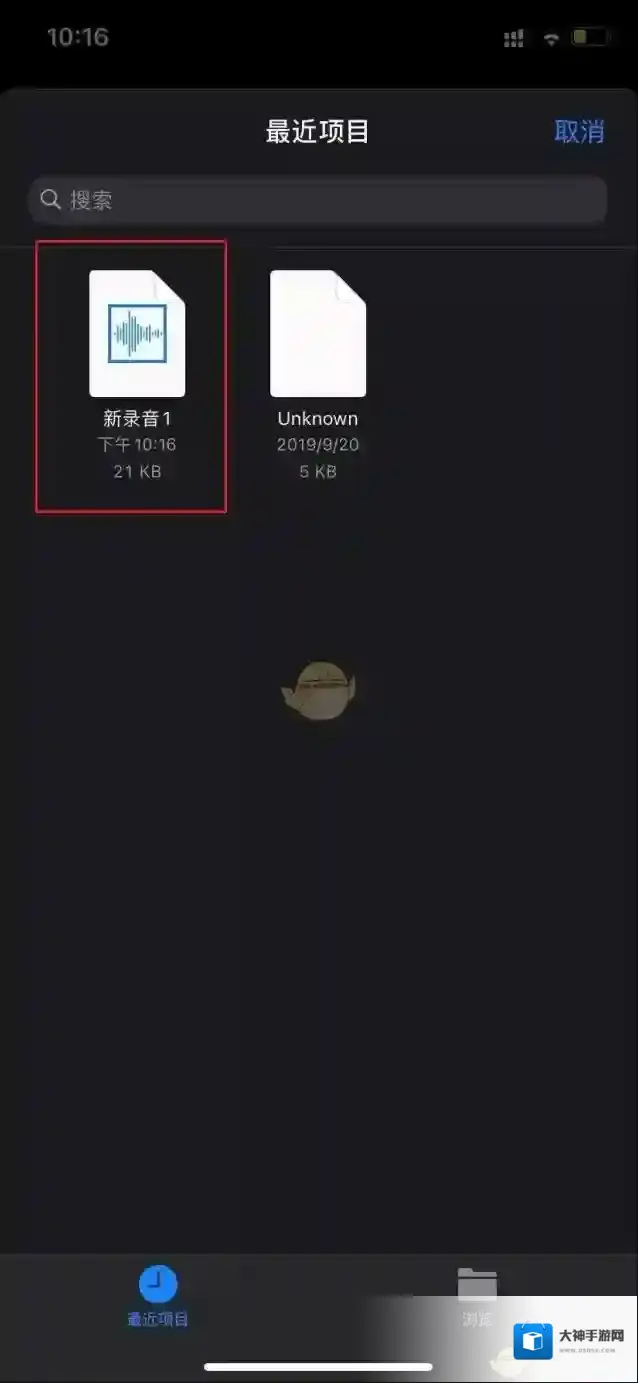 1、首先,使用苹果自带的语音备忘录录制一条你的专属音频,并选择保存到文件。