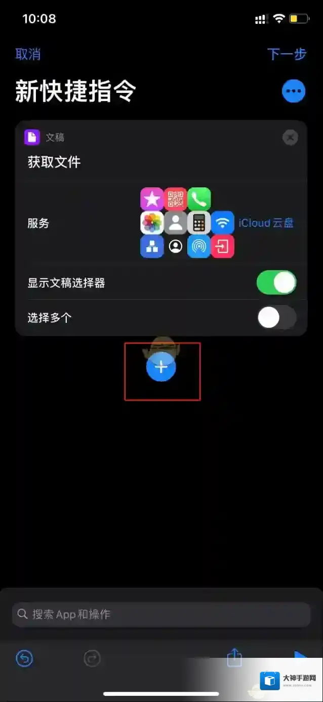 2、打开苹果自带的快捷指令,选择加号,再选择添加操作。