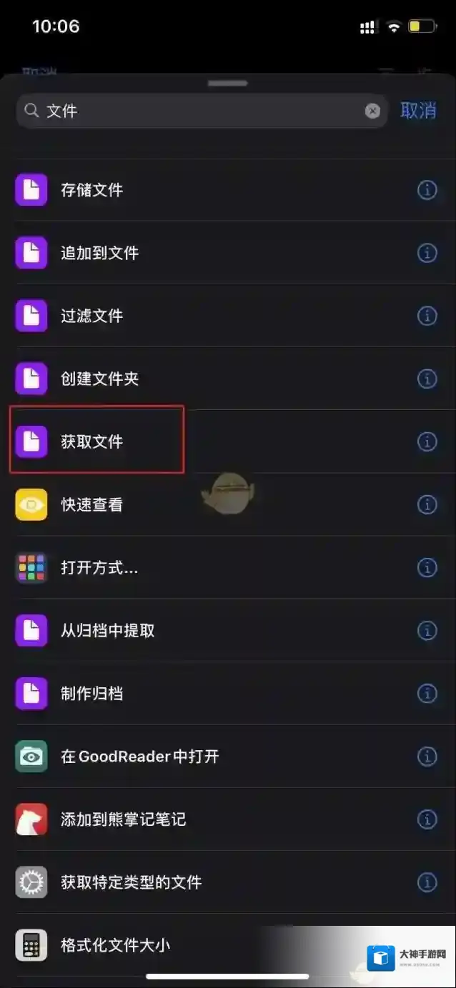 3、在搜索框中输入文件,选择获取文件。