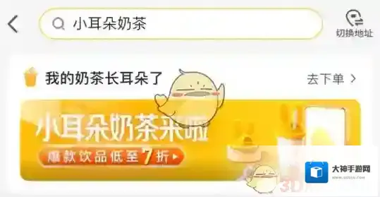 1、打开美团客户端,搜索“小耳朵奶茶”,点击出现的活动进入