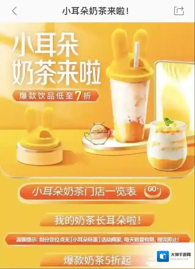 2、进入活动界面后,就可以在参与活动的店铺中购买奶盖奶茶,获得“长耳朵”的奶茶啦!