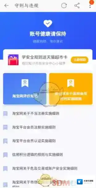 5、进入守则与违规界面,可以看到手机账号的健康情况。