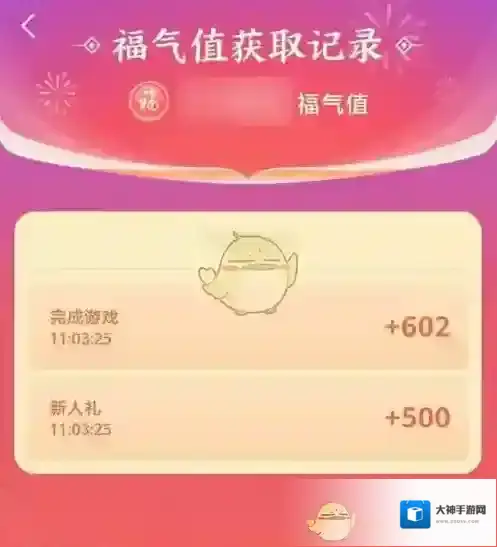 5、进入福气值获取记录页面,可以看到全部的福气值获取记录。
