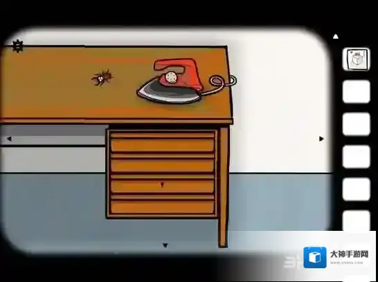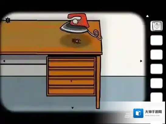 残忍的一幕要来了,点桌子切换到熨斗场景,点熨斗抬起,在点击小虫让它走过去……