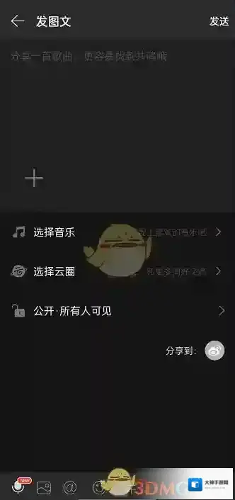 3、点击图中的发动态即可发表共鸣。选择右上角的设置可以设置分享范围。