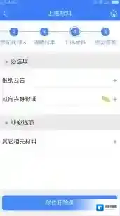6、点击“保存并下一步”,进入“上传材料”页面上传材料,上传需要上传的材料