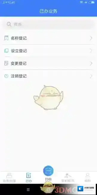15、业务完成,等待审核,点击手机底端的菜单“已办”,进入“已办业务”列表;该列表中包含已办的名称登记、设立登记、变更登记和注销登记等数据。