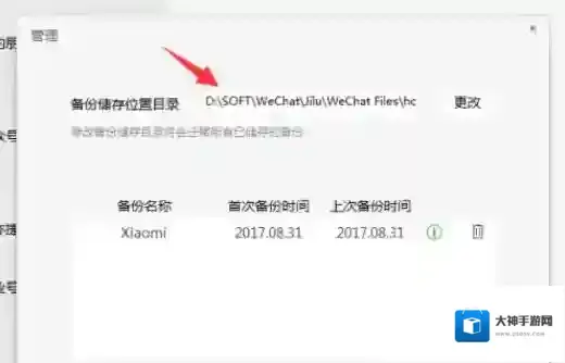 5、备份完毕后可以点击“管理备份文件”,查看备份文件所在位置。