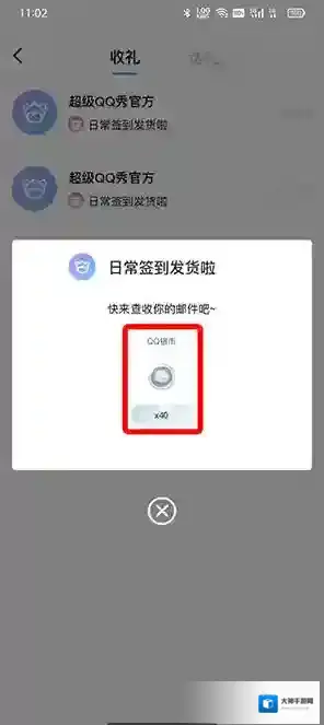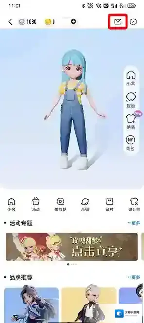 5、完成签到后返回到超级QQ秀页面,点击右上角的邮件;