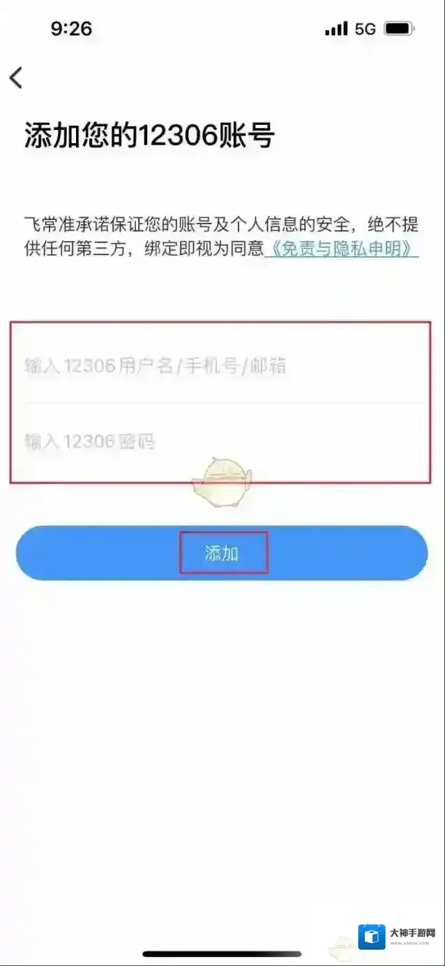 5、进入添加12306账号界面,输入账号信息,点击添加按钮即可添加成功。