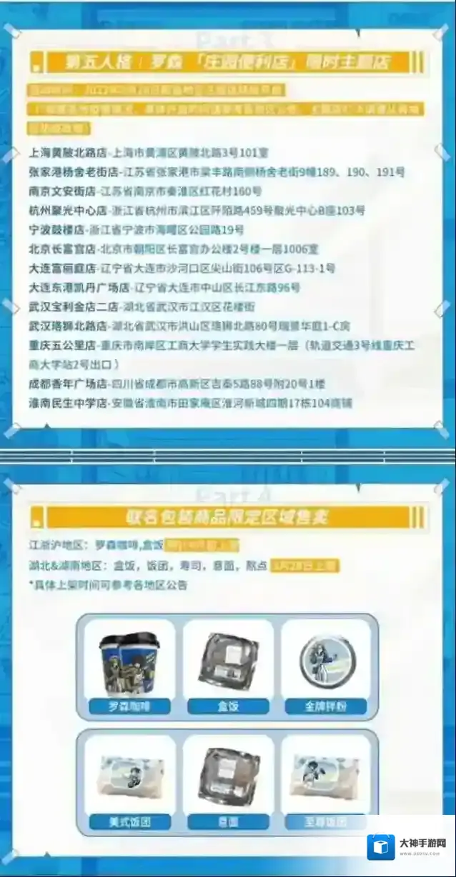 在江浙沪以及湖南、湖北地区的活动门店内,还将限时售卖联名包装商品,香醇咖啡、营养盒饭、金牌粉面、美味饭团等商品将换上联名包装,玩家们快来品尝美味食品吧!