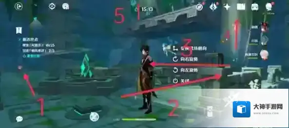 3.清理怪物后,记得回头拿风循币!如箭头所示依次将风场朝上,打开机关,解锁第五处风场。