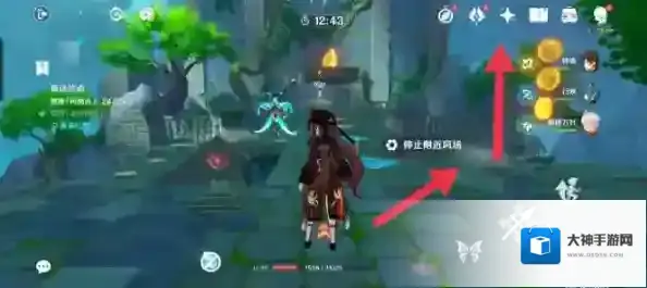 1.首先停止风场,根据箭头方向前进,将前方风向改为朝上并开启。