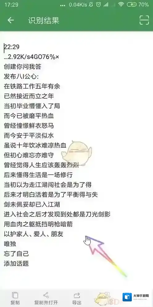 5、最后就可以看到识别出来的文字了,我们可以点击左下角的复制图标,复制识别出来的文字,发送到我们学校进行编辑的地方,进行再次的编辑处理。